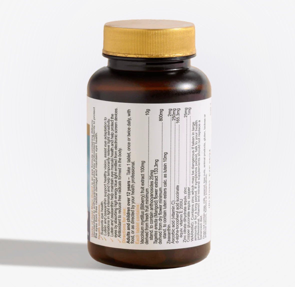 黑果越橘(山桑子),萬壽菊,玉米黃素,維生素C,維生素E,鋅,葡萄糖酸銅。